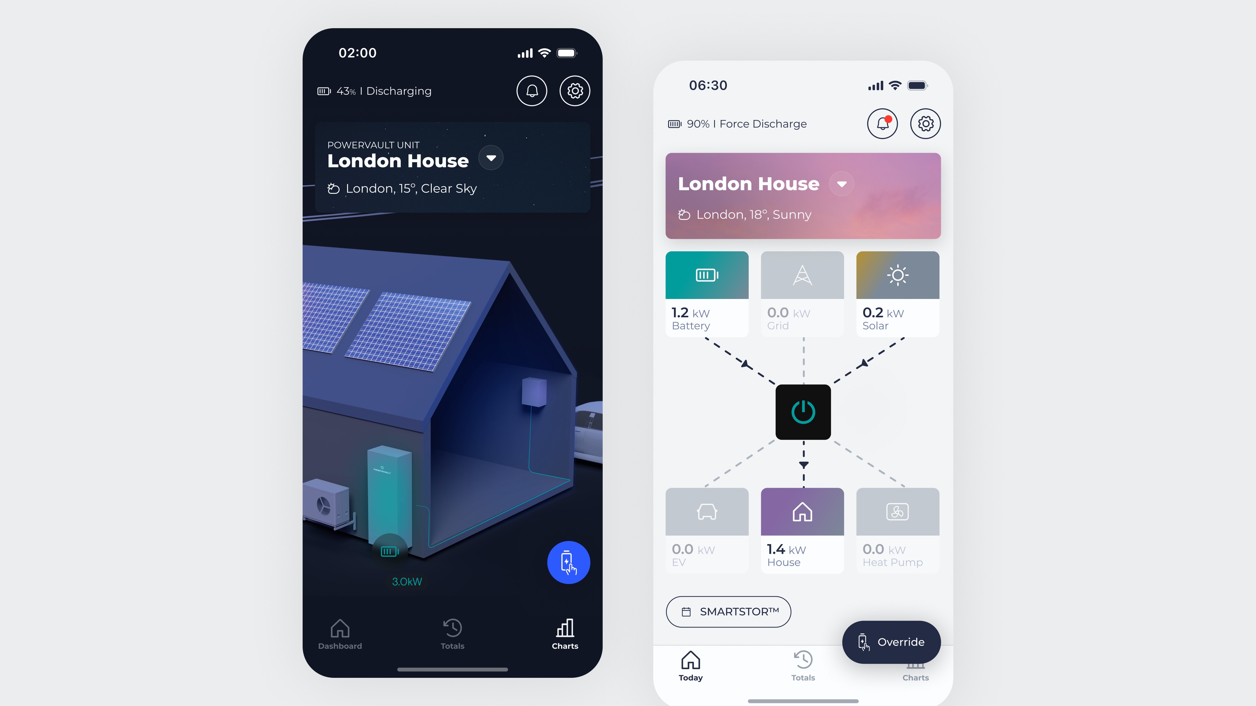 Powervault builds home batteries for solar and wind users. While the web portal exposed detailed telemetry, customers wanted clearer, app-first insights. I designed a new mobile app from scratch, with a live home view, clear totals (day/week/year), and charts that make complex energy data easy to understand. I also set design-system foundations, explored motion and 3D concepts, and used AI to speed up onboarding content and prototyping.